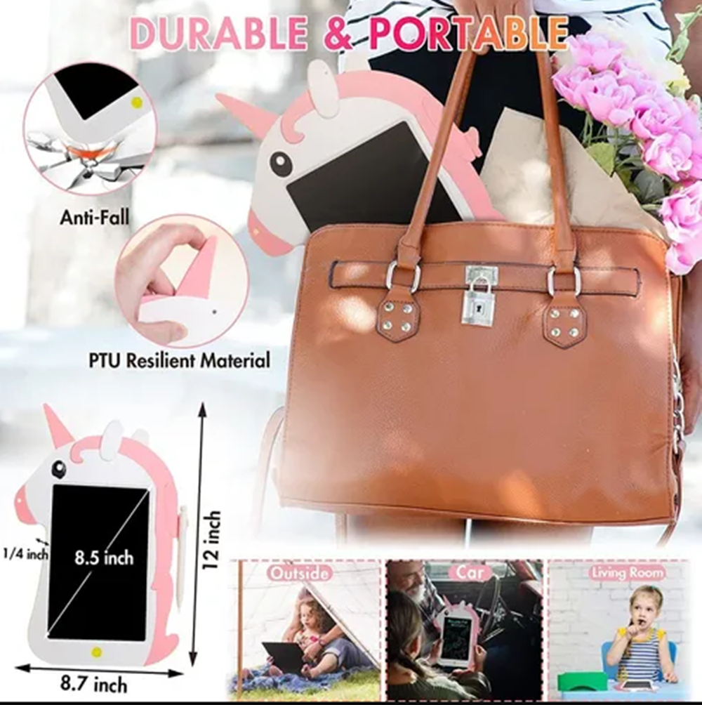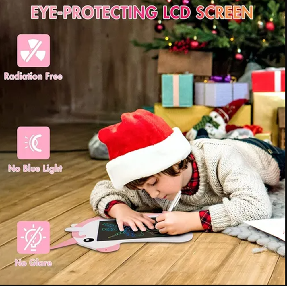 Pantalla de protección ocular: la pantalla LCD de escritura puede crear dibujos coloridos. Y la tableta de dibujo sin radiación y sin luz azul, no daña durante un uso prolongado. La tabla de 8.5 pulgadas proporciona a los niños más espacio para dibujar y grafitis.